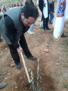 سمية بلول عضو قيادة شعبة الخدمات الأولى اشارت الى أهمية الحملة كونها تساهم في اعادة الغطاء الاخضر لسورية.