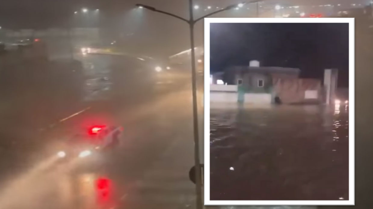 وأظهرت مقاطع مصورة متداولة على مواقع التواصل الاجتماعي شوارع المدينة مغمورة بالمياه.
