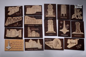 في قلب سوق القباقبية بدمشق القديمة، يرصف عدنان منصور مجسماته الدمشقية التي تمثل رموزاً ومعالم جميع المحافظات السورية بترتيب يلفت الأنظار، ويجذب عين المارة والسياح.
