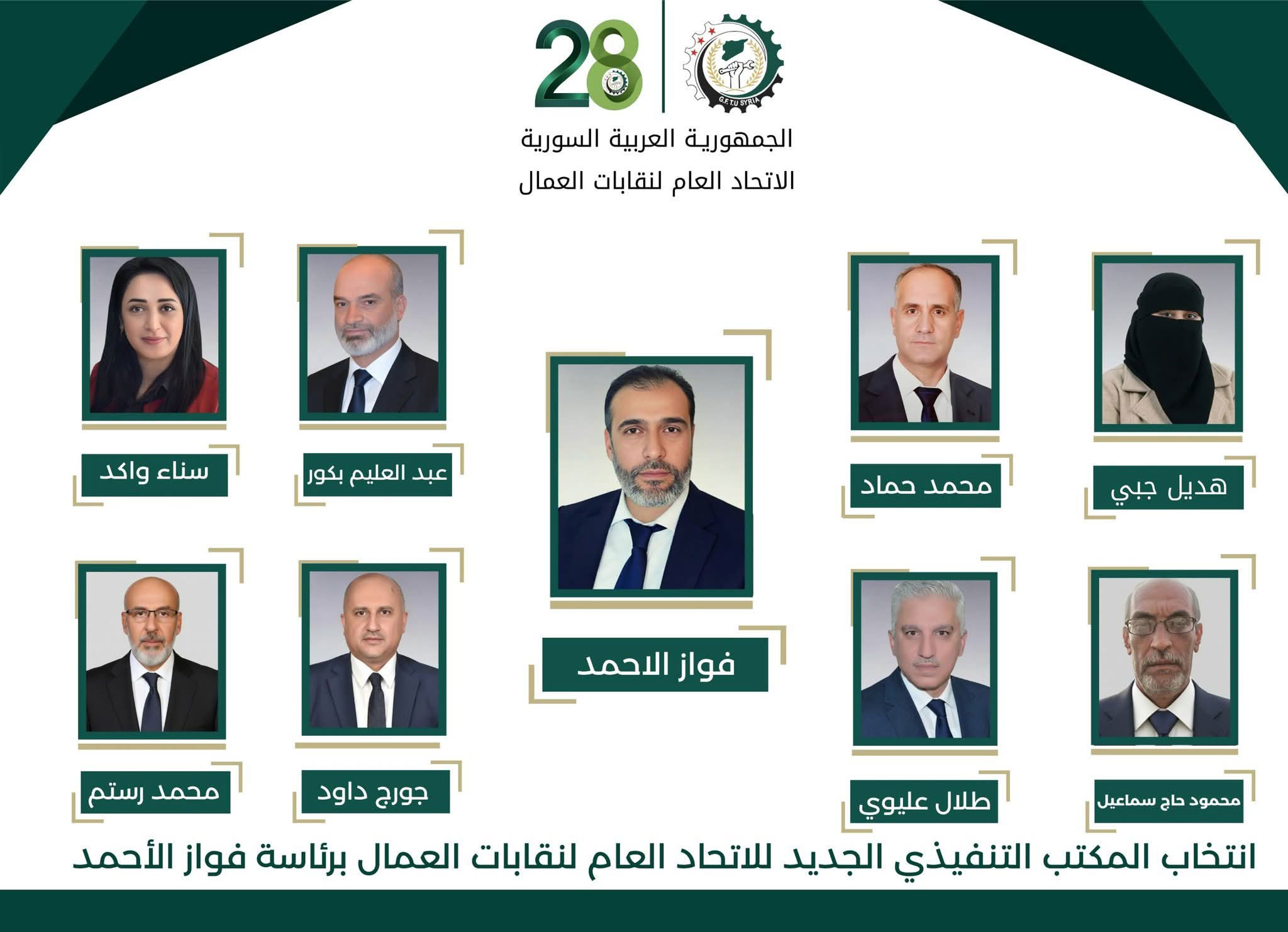 انتخب المجلس العام للاتحاد العام لنقابات العمال، بدورته ال 28، اليوم المكتب التنفيذي الجديد للاتحاد، برئاسة فواز الأحمد.