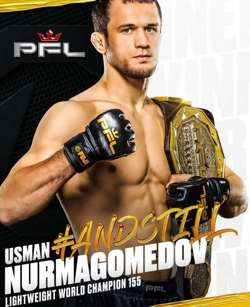 توّج المقاتل الروسي عثمان نورمحمدوف بلقب الوزن الخفيف لرابطة المقاتلين المحترفين، بعد فوزه على البريطاني ألفي ديفيس بالإخضاع في الجولة الثالثة، خلال النزال الرئيسي لبطولة رابطة المقاتلين المحترفين التي استضافتها دبي مساء أمس في كوكاكولا أرينا.